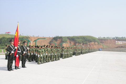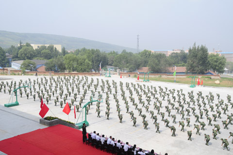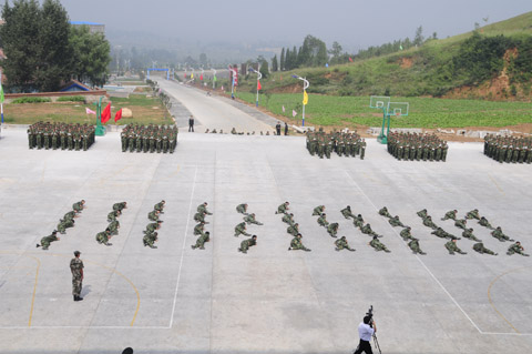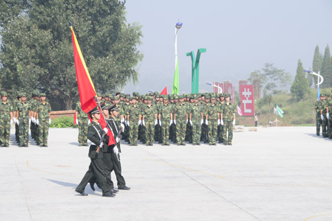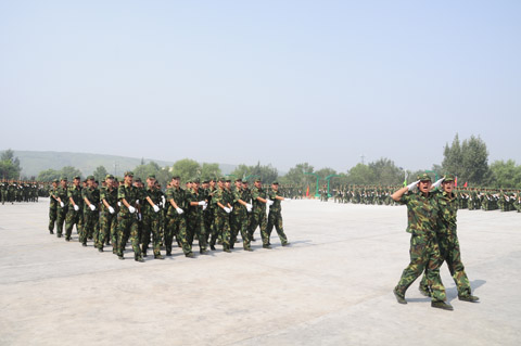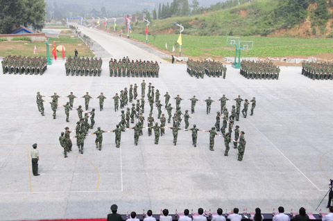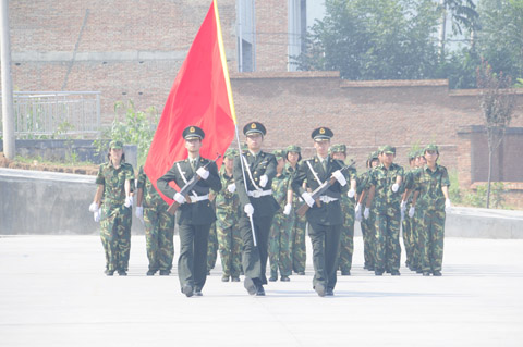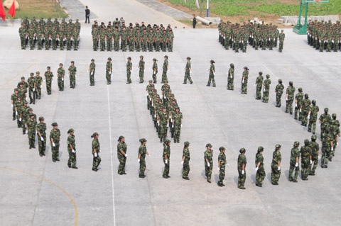 紧接着,2011级新生们军姿威武,排着整齐的队列,以饱满的精神、迈着整齐的步伐,喊着响亮的口号,依次通过主席台,显示了他们在12天军训中的可喜成果,展现了当代大学生的蓬勃朝气。阅兵式结束之后,进行了新生女子花样队列表演、新生男子拳术基本功表演、新生女子健美操表演、新生团体五步拳表演。