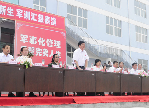 汇报表演结束后,李云济书记在会上发表了重要讲话。他代表学院党政领导和全院师生员工向承训全体教官表示衷心的感谢和崇高的敬意。向在军训期间表现出良好精神状态的同学们表示祝贺。李书记指出,同学们的表演很精彩、很成功,充分展示了广大参训教官和同学们纪律严明、团结拼搏的精神面貌。军训磨练了同学们的意志,培养了同学们的良好品质和作风。军训使同学们学会了如何面对困难和克服困难,如何用坚韧不拔的意志来支配自己的行动;军训使同学们懂得了只有精诚团结、齐心协力,才会取得成功;军训使同学们明白了要有团队意识和集体主义精神,要服从命令,遵章守纪、一切行动听指挥。最后,他希望全体新生要把军训中历练出来的良好精神状态融入到未来的学习中,把昂扬的斗志转化成学习的热情,把英姿飒爽的队列转化成精湛的技能和知识,把严明的战斗作风转化成良好的校风、校纪和和谐的团队精神,在以后的学习中取得更大的成功。