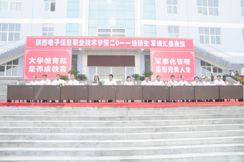 2011年9月9日上午,我院2011级新生军训汇报表演在蓝田向阳校区综合楼前广场隆重举行。院长党惠清、院党委书记李云济、院理事会理事长兼常务副院长穆耀辉、副院长陈建铎、院党委副书记武玉光、院工会主席杨瑞卿、军训师政委张兴盛、军训师参谋长严孟军及学院各系、部、处、室负责人观看了汇报表演。汇报表演由军训师参谋长严孟军同志主持。