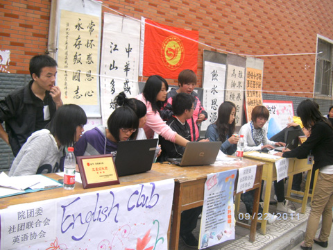 院团委、学生会下设办公室、组织部、实践部、文艺部、生活部等近20个部门和社团。各部门负责人和骨干亲自坐镇,面对新生的提问耐心解答,尽情展现着我院团委、学生会独有的风采,吸引着2011级新生的加入。