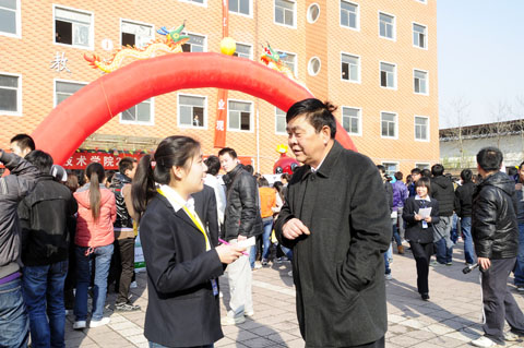 2011年11月23日,我院隆重举办了2012届毕业生校园招聘会。学院领导、学生处、教务处、系、部领导和企业代表及全体毕业生出席了招聘会。招聘会由院理事会理事长兼常务副院长穆耀辉主持,院长党惠清致辞,她对毕业生提出了三点要求:一是要保持平稳心态,准确定位。二是要主动出击,相信自己。三是要放眼未来,着眼长远。并希望在本次招聘会上,用人单位能选拔出合适的人才,毕业生能找到适合自己的岗位。企业代表史扬威和学生代表田帅在大会上进行了发言,院党委书记李云济宣布招聘会开始。