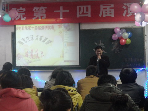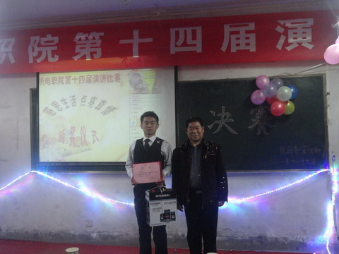 2011年12月9日下午,我院第十四届演讲总决赛和颁奖仪式在2号教学楼305教室举行。院党委副书记武玉光、学生处处长马放奇、院团委书记李勃出席了颁奖仪式。