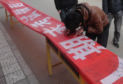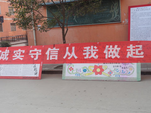 为促进学风考风建设,杜绝考试舞弊等违纪违规现象,院团委于2011年12月16日下午,在学院主干道上举行“诚实守信从我做起、从期末考试做起”诚信考试签名活动。