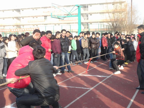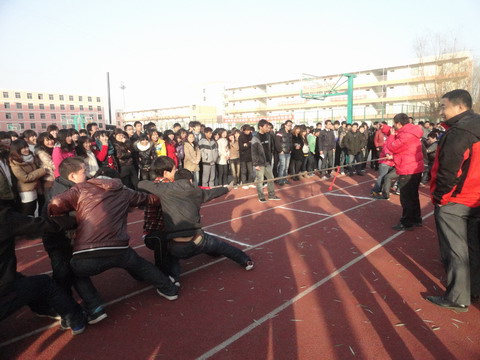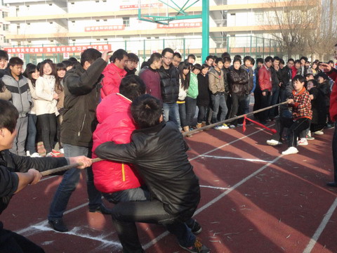 为响应阳光体育运动号召,丰富我院学生课余文化生活,促进系(部)间的友谊和联系,增强凝聚力,由院团委主办,体育教研室承办的“2011年陕电职院系部拔河比赛”于12月24日下午16点在学院操场举行,院学生处处长马放奇、教务处处长刘战鹏、基础部副主任翟栓领、体育教研室黄建峰、团委书记李勃、及各系部负责人参加了本次比赛。