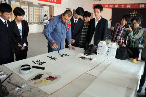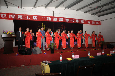开幕式后,团委组织表演了精彩的文艺节目,与会书法爱好者进行了现场笔会。他们的精彩表演嬴得了与会师生的称赞和掌声。