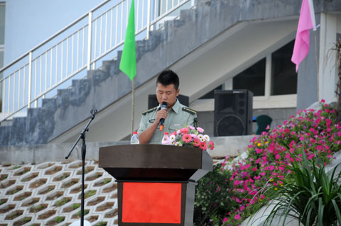 军训教官代表崔强强发言