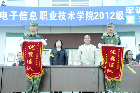 军训总结后,学生处处长、军训团参谋长田志岗宣读了《关于表彰2012级军训先进连队、优秀教官和优秀学员的决定》(陕电职院[2012]24号),主席台就坐的领导为获得先进连队、优秀教官和优秀学员颁发了荣誉证书。