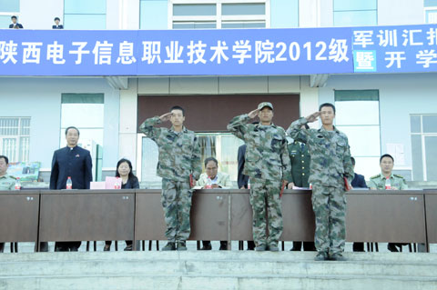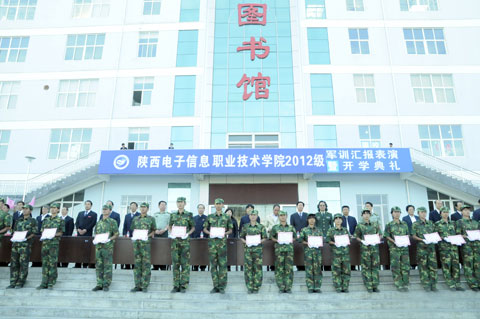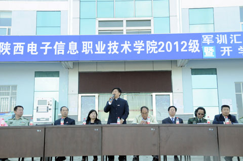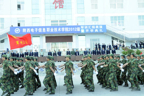2012年9月15日上午,我院2012级新生军训汇报表演在图书馆楼前广场隆重举行。华西教育集团董事长王明亮,陕西省教育厅维稳联络员史汉普,院长党惠清,院党委书记史军胜,华西教育集团华西大学党委副书记冯晓方,军训师政委张兴盛,军训师参谋长严孟军,院理事会理事长兼常务副院长、党委副书记穆耀辉,副院长陈建铎,院工会主席杨瑞卿,华西教育集团向阳校区主任张鹏及学院各系、部、处、室负责人观看了汇报表演。汇报表演由军训师参谋长严孟军同志主持。
