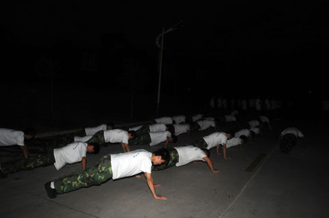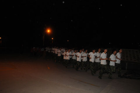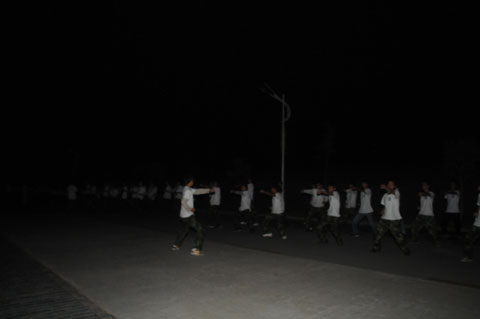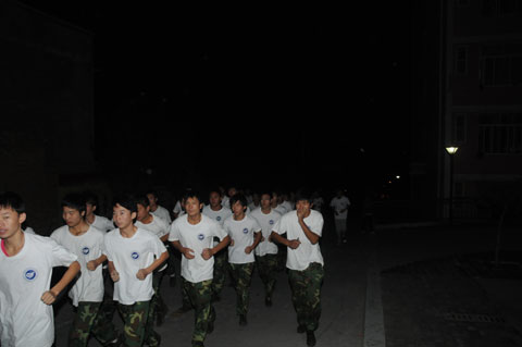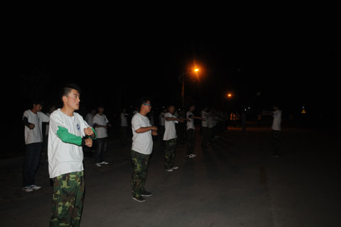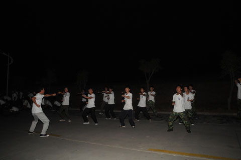 每日清晨6点,同学们在公寓楼前集合,身着白色T恤,排着整齐的队列,在领操员的带领下,迈着矫健的步伐,喊着响亮的口号,个个精神饱满。在跑步结束后,男生练军体拳、做俯卧撑和马步冲拳;女生跟随着音乐做健美操,展现了我院学生良好的精神风貌。