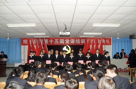 典礼在庄严神圣的《国歌》声中拉开了帷幕。党校副校长马放奇对第十五期党课学习作了总结,他讲:培训班于2012年10月21日顺利开班,经过党校集中辅导、各党支部组织学习培训和个人自学,于11月26日举行了结业考试。共有221名学员参加了考试,176名学员经综合考核顺利结业,并依照评选程序,评选出了20名优秀学员和5名优秀学生干部。这期培训只所以能达到预期效果,一是领导重视,准备工作充分;二是严格工作程序,切实做好选派和考勤管理工作;三是高质量的党课内容,切实提高了学员学习的积极性;四是系统的培训学习,有效地提高了学员思想政治素质,增强了学员加入党组织的决心和信心;五是学员推选、课程内容安排等有待改进。