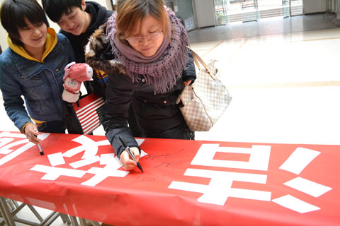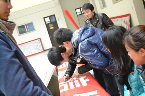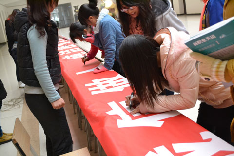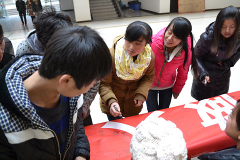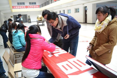 为进一步营造诚信育人的环境和氛围,使学生养成良好的诚信品质,2012年12月17日,由院教务处、学生处主办,院团委、学生会承办的以 “诚信考试、从我做起”为主题的签名活动,在我院六号楼一楼大厅举行。