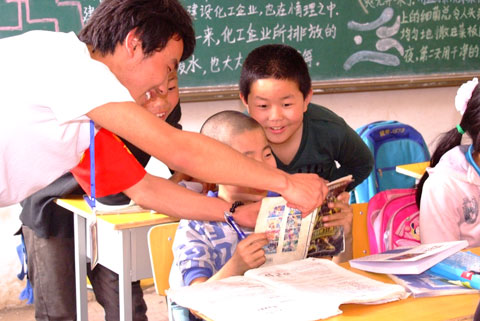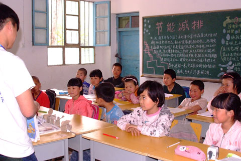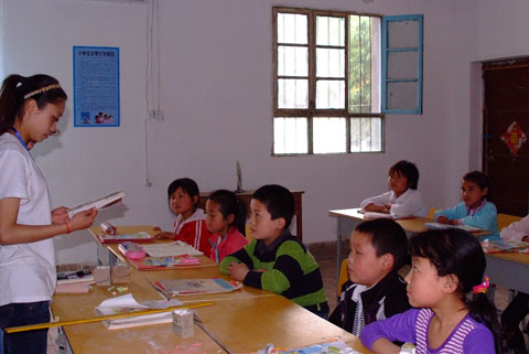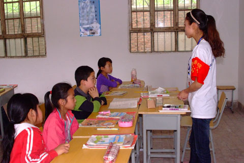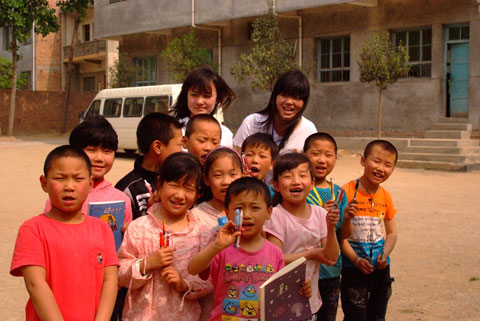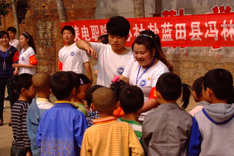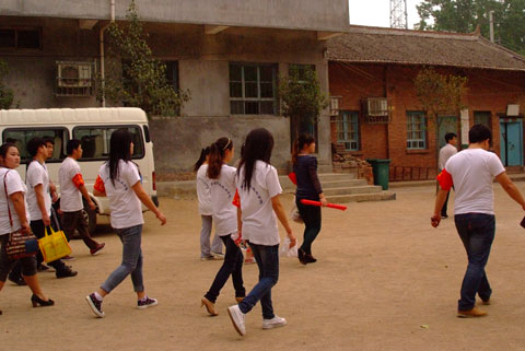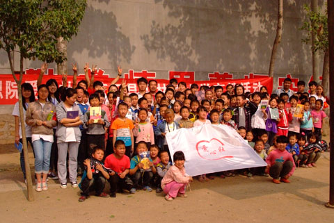 2013年4月19日下午,我院团委社团部爱心社12名优秀学生代表,带着提前购置的文体用品前往冯林寨小学开展支教活动。