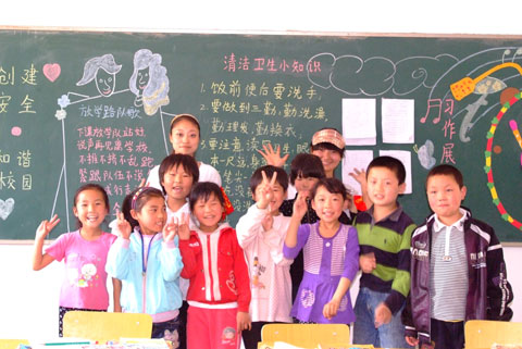 我院参与支教活动的同学,受到冯林寨小学师生的热情欢迎,本次支教活动对象主要以小学三、四年级学生为主,支教科目包括语文、外语、美术、体育等。根据冯林寨小学领导的安排,各组同学按计划分班代课。课堂上支教同学分工明确,配合融洽,充分调动小朋友的学习积极性、课堂气氛活跃。活动结束后,支教同学与冯林寨小学领导及小朋友们合影留念。