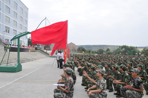 军训动员大会在庄严的国歌声中拉开了帷幕。穆耀辉同志作了军训动员报告,他首先代表全院师生员工,对2013级新同学的到来表示诚挚祝贺和热烈欢迎,向承担此次训练任务的全体教官表示崇高敬意和衷心感谢。他指出,军训是高等院校教学内容的组成部分,是同学们接受国防教育的基本形式,也是同学们迈入大学校园后的第一门必修课,军训能够培养同学们爱国卫国意识,增强学生开拓进取、刻苦学习、团结向上的集体意识,锻炼学生吃苦耐劳、奋力拼搏的精神,为今后大学的学习、生活打下一个良好的基础,对学生今后的人生道路也将是一段宝贵的经历,是磨练学生意志、锻炼学生身体的大好机遇。他对全体参训学生、教官和带队干部提出了四点希望:一是要有吃苦的准备,有战胜困难的信心,严格训练,力争好的军训成绩;二是遵规守纪,团结互助,积极培养集体主义精神,克服个人主义的不良习气。三是尊重教官,服从命令听指挥;四是要严格施训,科学管理,推动我院学生工作再上新台阶。