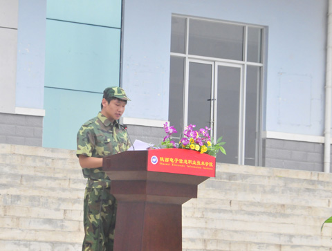 学生处处长、军训团参谋长田志岗宣读2013级新生军事训练实施计划