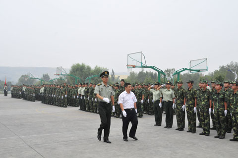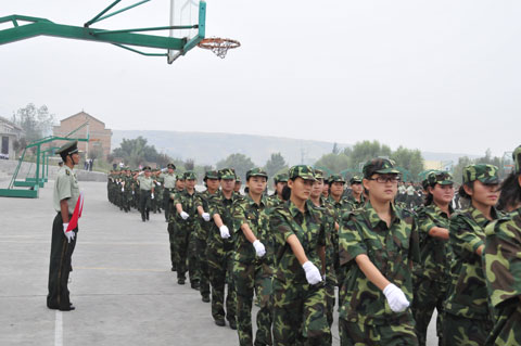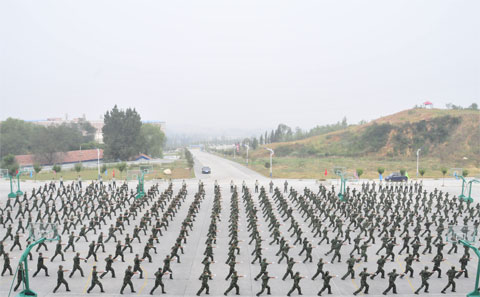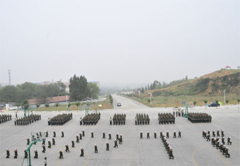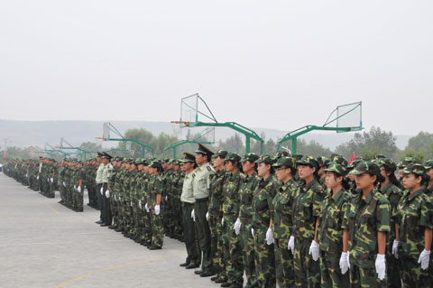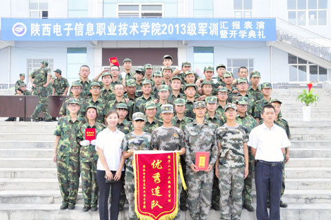 2013年9月10日上午,我院2013级新生军训汇报表演在图书馆楼前广场举行。院党委书记史军胜,院理事会理事长兼常务院长、党委副书记穆耀辉,副院长夏绘秦,院工会主席杨瑞卿及学院各系、部、处、室负责人参加了大会。会议由院党政办副主任马放奇主持。