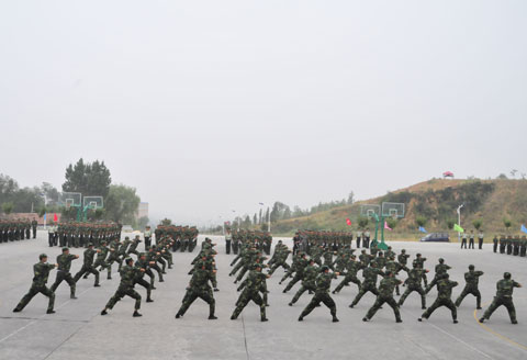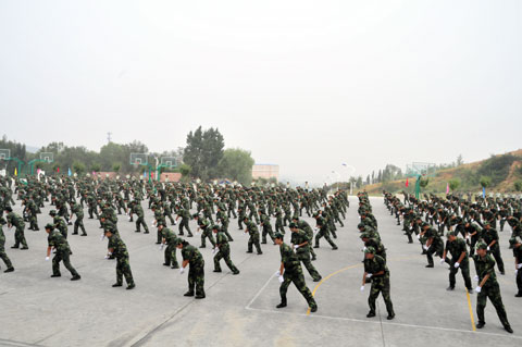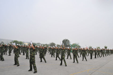 大会在庄严肃穆的国歌声中拉开了帷幕,伴随着嘹亮的解放军进行曲,常务院长穆耀辉在军训指挥长陪同下检阅了军训方队。紧接着,军姿威武的2013级新生,排着整齐的队列,迈着整齐的步伐,喊着响亮的口号,依次通过主席台,展现了他们在10天军训中所取得的可喜成果和当代大学生昂扬激情和青春风采。随后,参训同学进行了男子擒敌拳表演、女子花样队列表演、集体五步拳表演和集体洗衣舞表演,合唱了《士兵的桂冠》。
