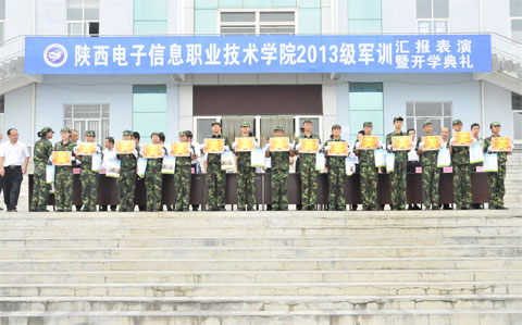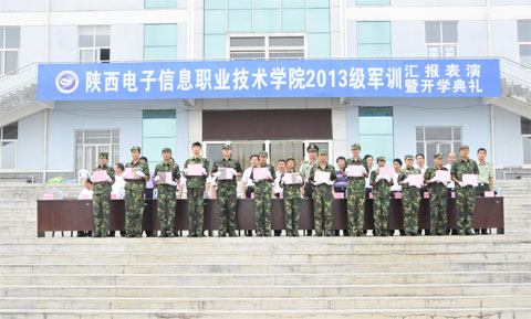 汇报表演结束后,军训团参谋长田志岗宣读了《关于表彰2013级军训优秀连队、文明宿舍、优秀教官和优秀学员的决定》(陕电职院[2013]14号),主席台就坐的领导为获得优秀连队、文明宿舍、优秀教官和优秀学员颁发了荣誉证书。