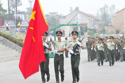 最后,2013级新生军训汇报表演暨开学典礼在热烈的掌声中结束。