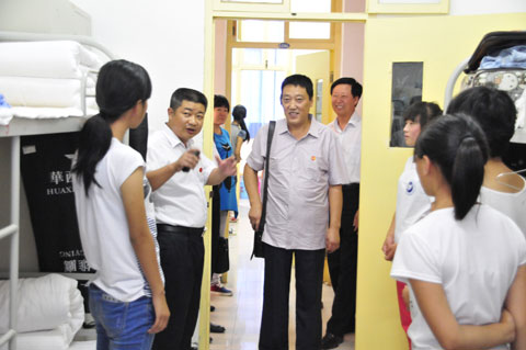 9月10日下,院党委书记史军胜,院理事会理事长兼常务院长、党委副书记穆耀辉,院工会主席杨瑞卿及各系部领导在学工部老师的陪同下,深入学生宿舍,看望2013级新生,了解学生们的生活情况及近期思想动态。