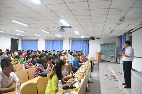 在中秋节来临之际,通信工程系为欢迎2013级新同学,9月17日晚,在教学楼一楼多媒体教室举行了 “以心连心携手迎新”为主题的中秋联谊活动。通信工程系专业负责人王变琴教授、党支部书记张春燕及辅导员与全体学生共同度过了美好的夜晚。