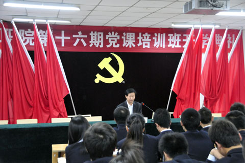 2013年10月22日,我院在教学楼6301多媒体教室举行第十六期党课培训班开班典礼。院党委书记史军胜,常务院长、党委副书记兼党校校长穆耀辉及各党总支(支部)书记、全体学生管理人员和307名入党积极分子参加了典礼。开班典礼由党校副校长马放奇主持。