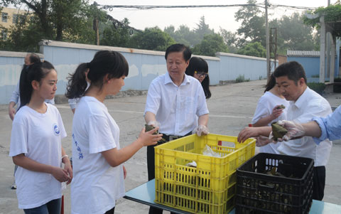 2014年6月2日是中华民族的传统节日—端午节,为了加深师生对民族文化的了解,传承中华民族的美德,6月2日早6时40分,院党委书记史军胜、院理事长穆耀辉及各系部负责人为全院师生发放粽子,共贺节日到来。