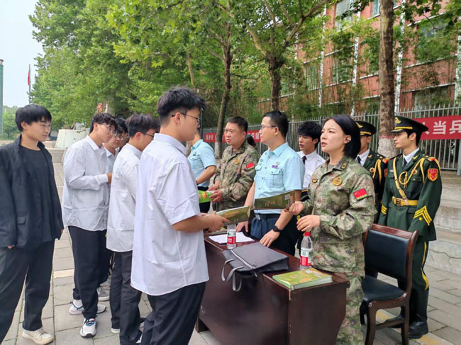 宣讲会上,蓝田县人民武装部文职副部长李岩从征兵流程、入伍条件、优惠政策、部队生活等方面进行全方位介绍,帮助同学们深入了解参军入伍的重要意义和广阔前景。他用生动的语言和真实的案例,让同学们对参军入伍有了更深入的了解,也让大家感受到了军人的荣耀与责任。同时,现场还设立了答疑环节,为有意向参军的同学解答疑惑,提供专业指导。现场气氛热烈,同学们积极提问,副部长李岩耐心解答,现场不时响起阵阵掌声。许多同学表示,通过这次宣讲会,他们更加坚定了参军报国的决心,希望能在部队中磨炼自己,为国防事业贡献一份力量。宣讲会结束后,同学们在教学楼广场现场咨询征兵相关问题。
