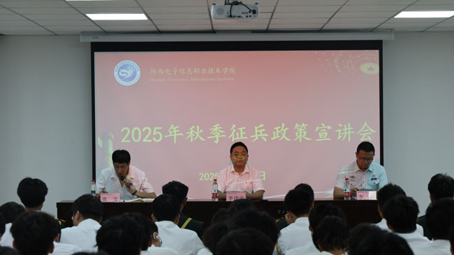 为响应国家号召,激发学生参军报国热情,6月20日,陕西电子信息职业技术学院在1号教学楼1207教室举办“2025年秋季征兵宣讲会”,院党委委员、副院长李泽宇出席并做征兵动员讲话,蓝田县人民武装部文职副部长李岩受邀为同学们详细解读征兵政策,宣讲会由学管科长张宝主持。