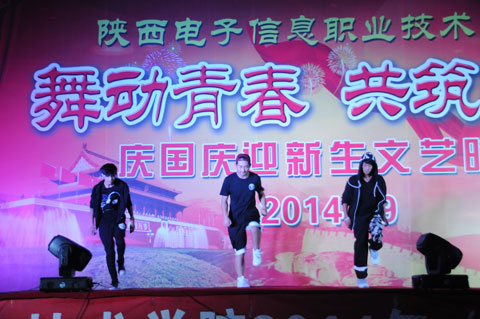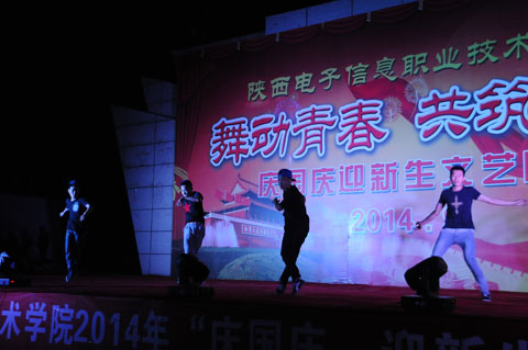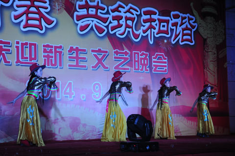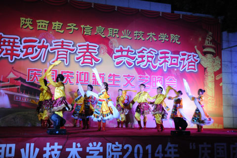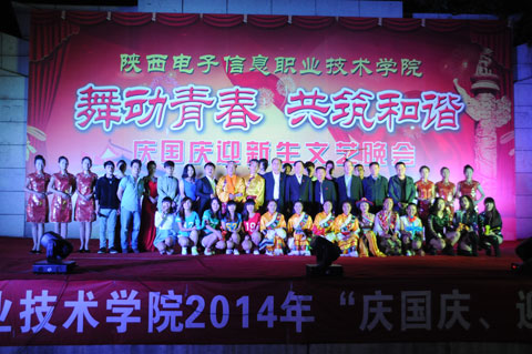 2014年9月29日晚19时,我院2014年庆国庆迎新生文艺晚会在一号楼广场举行。晚会以“舞动青春 共筑和谐”为主题。院党委书记史军胜,院理事会理事长兼常务院长、院党委副书记穆耀辉,副院长夏绘秦,院工会主席杨瑞卿以及各系部处室的领导老师和全院学生共同观看了晚会。