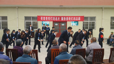 为弘扬中华民族尊老、敬老、爱老的传统美德,进一步增强学生的社会责任感和爱心意识。2014年11月21日下午,我院团委组织66多名青年志愿者带着100余双绵袜、水果、鸡蛋、牛奶、大肉等营养慰问品,前往蓝田县进行了爱心慰问活动。