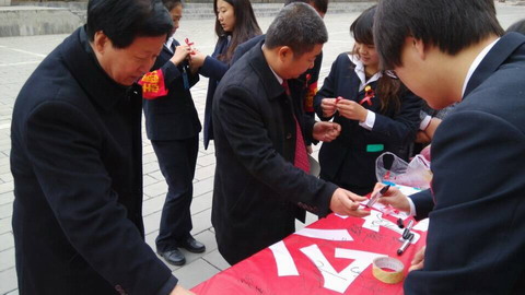 中午12:00整,签名活动正式开始,工作人员在活动场向同学们积极宣传艾滋有关知识,发放相关资料,师生写下自己的爱心寄语、留下了自己的名字,大家用相机留下了动人的画面。此次活动旨在号召全社会积极投身于艾滋病防治工作,共同承担防治责任和义务,群策群力,各展所长,遏制艾滋病的流行。