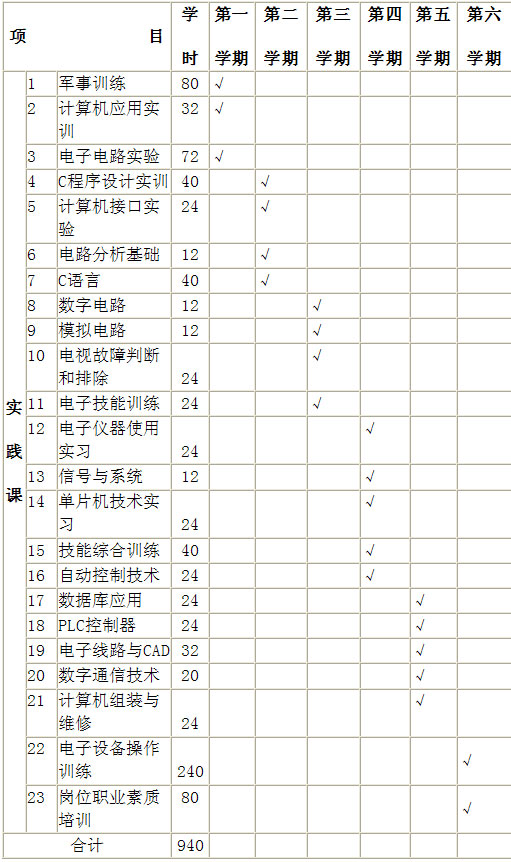 要求本专业学生能较系统地掌握电子技术专业的基本理论、基本知识和基本技能。较系统的掌握电子技术基础、微型计算机、智能电器的基本原理和基本知识,获得电子技术专业工程师的工程技术人才,并能从事简单控制装置的安装与调试的专门人才。